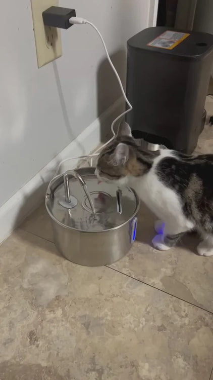 Purrens er en drikkefontene i rustfritt stål på 2,2 L, utviklet for å holde både kattunger, voksne og eldre katter godt hydrerte hele uken. Med et elegant vindu som viser vannivået, vet du alltid når det er på tide å fylle på. Fontenen er laget av 304-grad rustfritt stål som motstår korrosjon, tåler oppvaskmaskin og holder seg fri for lukt – for rent og trygt drikkevann hver dag.