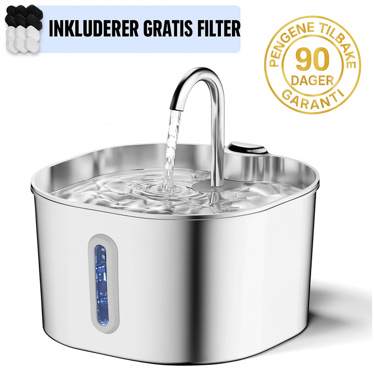 Hvis du ikke merker en tydelig forskjell i kattens drikkevaner – hyppigere slurker, bedre hydrering og mer ro i sjelen – kan du sende den tilbake og få full refusjon.